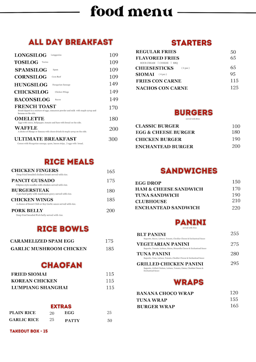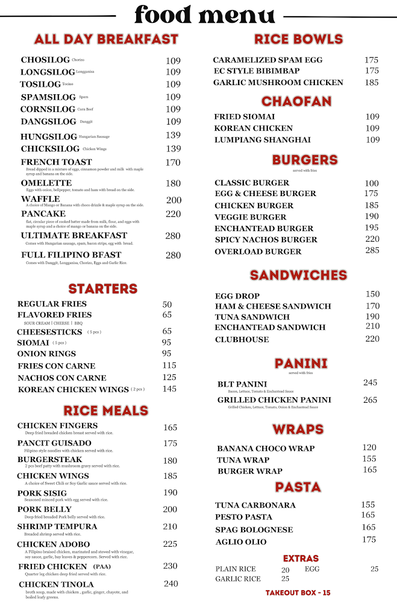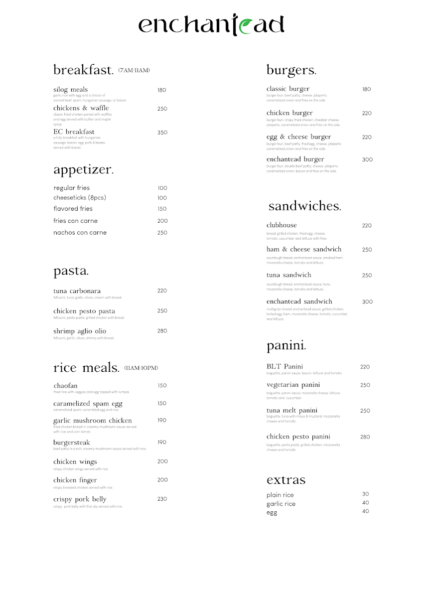 For further inquiries, feel free to contact them at +63 926 052 0694. Enjoy your culinary adventure at Enchantead Cafe!